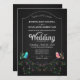 Convites de casamento. Os pombinhos bonitos e coloridos em cores tropicais de cor rosa claro e azul aqua adicionam um toque de cor alegre a um convite que seus convidados sempre lembrarão com um sorriso. Tipografia casual de giz manuscrito com uma simples borda rústica e design de espiral abstrato. Perfeito para os queridos que frequentam a escola considerando um tema de casamento de jardins antigos ou românticos, mas com poucas mudanças você pode criar uma aparência completamente diferente, adequada aos casamentos modernos, com um toque sofisticado de diversão para casais contemporâneos. O modelo versátil fácil de usar pode ser modificado para casamentos formais ou semiformais. Clique em Personalizar para alterar o estilo do tipo, as cores e o tamanho das fontes. Entre em contato conosco para obter ajuda com a personalização ou se precisar de espaço adicional para os detalhes do casamento.