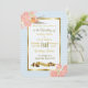 Vintage aves e flores cor-de-rosa e convites de casamento dourados adicionando suas informações de casamento na área personalizada.