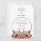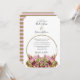 Esta design apresenta um buquê rústico de flores silvestres. Um simples círculo dourado circunda o texto enquanto os nomes da noiva e do noivo estão posicionados em cima. Os tons rústicos cor-de-rosa floral elogiam o verde das folhas. Os tons de ouro unem tudo para criar uma sensação rústica de jardim florestal rural. Ouro e listras cor-de-rosa cobrir a parte traseira do design. Design de convite para casamento elegante com elementos modernos. Também estão disponíveis itens de papelaria de casamento e outros formatos de convite de casamento.