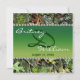 Os convites para o casamento Camo (camuflagem de caça) são temidos com folhas de carvalho, grama de messy e latido de árvores com uma borda de pérola na frente e atrás para um toque feminino. As áreas de texto apresentam uma combinação de cores verde para mais leve para recurso. Personalize as cores, o texto ou as fontes em seu estilo ou use as opções pré-selecionadas, se preferir.