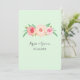 Cartões de modelo personalizados de convite de casamento em um padrão de flores cor-de-água rosa com pincel rústico com fundo verde e texto com letra de mão. Personalize estes convites com os detalhes do seu casamento. Disponível em produtos correspondentes para todas as suas necessidades de casamento.