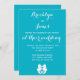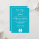 Azul personalizado (azul scuba) e convites para casamento de cavalos de mar brancos com texto personalizável, quando a noiva e o noivo estão hospedando
