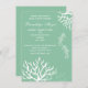 Esta design moderna apresenta corais marinhos e cavalos marinhos com um lindo fundo verde de mar. Personalize o convite com os detalhes do seu casamento. São perfeitos para o tema da praia, litoral, oceano e casamentos de destino. Eu tenho este design em esquemas de cores diferentes, se você não encontrar o que está procurando apenas me mensagem. Se você precisar mover qualquer um dos elementos ao redor para criar espaço para o texto, clique no botão Personalizar. Você pode mover os cavalos marinhos ou torná-los maiores se desejar. O verso do convite também tem bastante espaço para informações.
