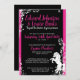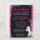 Estes convites únicos para casamento temáticos de equídeos cor-de-rosa e preto, apresentam um cavalo de criação branco com folhas florais e vinhas, tudo num estilo elegante de silhueta. Personalize completamente o seu texto de eventos, de qualquer forma, para o seu grande dia. Todas as minhas designs são © Novastorm Designs
