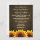 Convites para Casamento de Girassol em Café Castanho — combinam com as cartas RSVP e mais informações encontradas abaixo nesta página. Cumprimente o seu tema de casamento de girassol com estes convites que apresentam uma textura de quadro castanho como um fundo com girassóis vibrantes no fundo da frente e atrás de cada convite. Estes convites para o casamento são feitos com um cartão básico de alta qualidade; entretanto, você pode mudar o estoque para linho, feltro (gravado), reciclado e várias tonalidades metálicas se quiser com o número 2 (escolha seu estilo, tamanho e tipo de papel) abaixo do botão laranja adicionar ao carrinho. Também nessa opção é apresentada uma lista dos custos adicionais de uma reserva de cartão mais antiga. Cada convite tem um envelope branco. Veja os cartões RSVP de casamento correspondentes abaixo para completar a suíte.