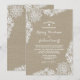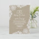 Burlap and Floral Lace Wedding Invtions - apresenta um fundo burlap impresso com um padrão decorativo de rendas florais ao redor do topo e do fundo para convidar um país ou tema rústico ou vintage.