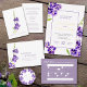 Bonito cor de água botânica da flor do céu brasileiro duranta flores roxas convites para casamento. Convites bonitos, ideais para um casamento botânico roxo ou jardim tropical temático. © A pintura a aquarela original e design por Sarah Trett www.sarahtrett.com para www.mylittleedenweddings.com
