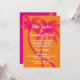 Procurando convites para casamento cor-de-rosa e laranja? Aqui está um modelo de convite de casamento tropical que é único e pode ser personalizado com seus próprios detalhes de evento especial. O design vibrante e bonito representa duas palmeiras juntas contra uma cor de fundo brilhante e tangerina. Quer mudar a sombra de laranja? Basta escolher outra cor na ferramenta de seleção de cores de fundo - isso também pode mudar a cor das palmeiras no verso.Categoria: ideias de casamento de cor-de-rosa e laranja, personalizadas; convites para casamento de palmeiras brilhantes e modelos para casamentos com temas de praia e oceano.Cores: laranja tangerina brilhante, magenta, rosa quente e branco.