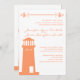 Encomenda 100 Convites - Economize 40% Um simples convite de casamento para um farol náutico em um coral e branco com âncoras no topo. A parte de trás do convite também tem o design do farol, que tem a palavra "Amor" escrita em roteiro no topo do farol. Estes convites são perfeitos para casamentos na praia, casamentos temáticos náuticos, e qualquer um se casando em um local de casamento de um farol.Basta adicionar seus próprios detalhes de casamento ao convite. Se você precisar alterar o tamanho ou a fonte do texto, use o botão "Personalizar" para mover as coisas, redimensionar o texto e personalizá-lo completamente. Caso contrário, se você gosta do layout e da fonte como ele é, então insira seus detalhes de casamento nos pontos de modelo. Os cartões RSVP de casamento estão disponíveis separadamente.