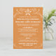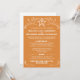 Os convites de casamento laranja queimados têm ornamentos decorativos brancos e uma estrela branca. Personalize a estrela no cabeçalho com as iniciais da futura noiva e noivo.