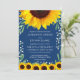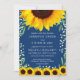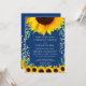 O convite azul de marinho elegante apresenta girassóis, verde e hálito de bebê.