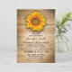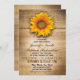 Convites de casamento para países rústicos de girassol com fundo de textura de madeira. Para casamento no campo em um celeiro, fazenda ou rancho.