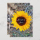 Os nomes da noiva e do noivo estão centrados no girassol de um lado do convite e o girassol é menor e no canto inferior do outro lado. O outro lado deste convite para casamento de camuflagem tem os detalhes do casamento em cima de uma camada branca transparente para que você possa ler o texto mais facilmente. Esses convites para casamento de girassol no campo são perfeitos para qualquer um que ama o campo, caça, camuflagem, ou está tendo um casamento no exterior. Escolha entre vários tipos de papel.