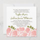 Estes convites de casamento bonito de hibiscos cor-de-rosa e verde são perfeitos para um casamento havaiano ou de praia tropical. Trabalho de arte © Chrissy H. Estúdios, LLC. Todos os direitos reservados. Flores cor-de-rosa com um aglomerado de pólen amarelo e folhas de samambaia verde.