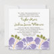 Estes convites bonito de casamento de hibiscos roxos e verdes são perfeitos para um casamento havaiano de luau ou praia tropical. Trabalho de arte © Chrissy H. Estúdios, LLC. Todos os direitos reservados. Flores Lavandas com pólen amarelo e folhas verdes.