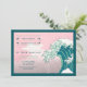 O Excelente Wave Off Kanagawa é o mais famoso impressão de bloco de madeira do artista japonês Hokusai. Originalmente publicada na década de 1830, é uma das mais conhecidas obras de arte japonesas do mundo. O impressão - modificado e cortado neste convite para o casamento - mostra uma onda gigante a torcer sobre o Monte Fuji distante (não representado). A onda se dissolve em dedos fractais de espuma, liberando bolhas charmosas de spray marinho ao mesmo tempo. O impressão foi ajustado para lhe dar um esquema de cor verde, cor-de-rosa e divertido.