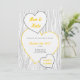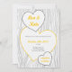 Este convite rústico apresenta um conjunto de 3 corações sobre um design de grão de cinza. O padrão opcional de grãos de madeira no verso pode ser deixado como está ou excluído durante a personalização. Todos os tipos de letra e o tipo de letra podem ser personalizados, bem como as cores da fonte. Também estão disponíveis cartões rsvp correspondentes e outros itens.