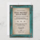 Convites para Casamento de Madeira em Turquesa Ocidental - O design apresenta madeira em celeiro recuperada em turquesa, na frente e atrás. O design de madeira apresenta um chique ou aparência rústica/pintada com estilhaço. A frente tem várias estrelas de bronze claro/metal castanho impressas no quadro de madeira de celeiro. Dentro, o quadro é uma safra impressa ou um papel com aparência de pergaminho.