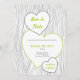 Este convite rústico apresenta um conjunto de 3 corações sobre um design de grão de cinza. O padrão opcional de grãos de madeira no verso pode ser deixado como está ou excluído durante a personalização. Todos os tipos de letra e o tipo de letra podem ser personalizados, bem como as cores da fonte. Também estão disponíveis cartões rsvp correspondentes e outros itens.
