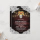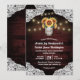 Sunflower Mason Jar Wood Lace Wedding Invtions - apresentam um fundo de madeira vermelha profundo aparado com rendas e decorado com luzes cintilantes de cordas quentes. O design também apresenta um buquê de girassóis dentro a mason jar que você pode personalizar as iniciais para as de sua escolha. O verso também apresenta o mesmo cenário de rusticidade do país que corresponde à frente.