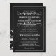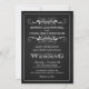 Vintage Chalkboard Wedding Collection — Banner de corações florais, suave, rico, com uma bela tipografia no estilo marquee retrô, faz um convite de casamento preto e branco. Adicione suas iniciais, nomes e informações de casamento neste modelo fácil de usar. O tipo de script misto Elegante e o tipo de estilo letterpress são adequados para o tema formal ou semissformal. Perfeito para casamentos modernos modernos modernos modernos com um toque sofisticado de diversão clássica para a noiva e o noivo tradicionais. Entre em contato conosco para obter ajuda com a personalização se precisar de espaço adicional para os detalhes do casamento. Motif de deco de arte opcional na parte de trás.