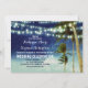 marinho ombre praia convites para casamento com luzes de cordas penduradas nas palmeiras. Convites de casamento tropicais e modernos à praia para casamento à beira-mar ou casamento de destino com sotaques de luz cintilante.