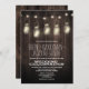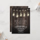 Convidações de Casamento de Mason Jar do Barão Russo - perfeitas para verão, outono, primavera ou casamentos no inverno - qualquer estação é apropriada. Se você está tendo um casamento temático, country ou rústico com jarras de pedras e cordas de luz então esta design tem o que você precisa. O design apresenta a madeira de celeiro recuperada como fundo e os frascos de pedreiro pendurados com pirilampos ou apenas luzes comuns. Os frascos-mason estão pendurados nas luzes das cordas.