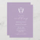 O convite de casamento lilás elegante apresenta um design mínimo com uma crista monográfica. Tipografia moderna com serifa clássica em branco. A placa reverte para uma cor roxa correspondente. Para comprar a linha completa visite www.zazzle.com/dotellabelle