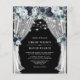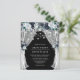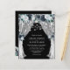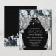Convites elegantes de casamento baratos, com marinho, com um fundo preto de tabuleiro de tendências que pode ser mudado para qualquer cor, flores azuis de cor azul-d-água, luzes de cordas e um modelo de casamento moderno.