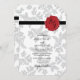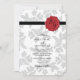 Este design apresenta um padrão elegante de folha de vintage e uma imagem personalizada de selo de cera. A folha de cinza úmida modelou contrastes de fundo contra a fita preta e o selo de cera vermelha. A combinação de cores cinzas, vermelha, preta e branca cria um estilo sofisticado, moderno e chic. Design de convite para casamento elegante com elementos modernos. A configuração simples da tipografia lhe dá um estilo distinto. Também estão disponíveis itens de papelaria de casamento e outros formatos de convite de casamento.