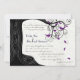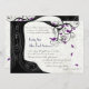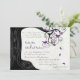 Pássaros Roxos Adoram Iniciais Românticas no Tronco da Árvore de Oak. Grove Floresta Encantada com Sutil Fundo Damasco Convites de Casamento