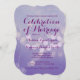 O estilo de tipografia de Tendy Simple e Modern Trendy Convidam o Modelo de Celebração de Casamento com um fundo roxo e lilás com um efeito de pontos de luz bokeh. O texto diz "O prazer de sua empresa é solicitado na Celebração do Casamento entre {bride e groom}. Você pode editar qualquer texto no modelo para atender às suas necessidades. A parte traseira do convite tem a mesma cor bonito. As cores podem parecer cores ligeiramente diferentes, dependendo do tipo de papel escolhido. Escolha entre mais de 10 tipos diferentes de papel, incluindo acabamentos texturizados. Perfeito para primavera ou convites para casamento de verão.