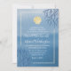 Convites para Casamento de Praia de Seashell de Recife de Coral - apresenta um fundo de aquarela azul decorado com coral e um design de concha.