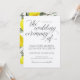 Convites para Casamento de Calliografia Luxe (Cinza e Amarelo): Este modelo de convite para casamento de galho de limão vintage certamente impressionará seus convidados! O texto "The Wedding Ceremony of" está na design, mas você pode fazer o resto do texto para torná-lo seu! As costas têm um aspecto mais limpo do que a versão em apuros.
