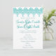 Aqui está um elegante convite de casamento de cor azul-turquesa com design de cor azul-turquesa, impresso no topo do convite. O termo "renda" refere-se a um design impresso, e não a qualquer lugar de tecido real.Basta adicionar seus próprios detalhes de casamento ao convite. Se você precisar alterar o tamanho ou a fonte do texto, use o botão "Personalizar" para mover as coisas, redimensionar o texto e personalizá-lo completamente. Caso contrário, se você gosta do layout e da fonte como ele é, então insira seus detalhes de casamento nos pontos de modelo. Os cartões RSVP de casamento estão disponíveis separadamente.
