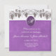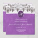 Este convite de casamento apresenta um desenho antigo de uvas em uma videira com uma aparência texturizada de uva/cor roxa. O oval roxo escuro inclui um monograma personalizável que você pode mudar. Perfeito para o casal que ama todas as coisas roxas (ou vinho!). O papel selecionado é ouro metálico - você pode mudar o estilo do papel se quiser ajustado o seu tema.
