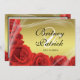 Convites Dourados e Rosas vermelhas de casamento — Corresponda às cartas RSVP e ao conjunto inteiro encontrado abaixo nesta página. Cada convite apresenta um elegante design de rosa de ambos os lados, em vermelho vibrante, com fundo dourado. O design também apresenta iluminação branca esbranquiçada. Estes convites para casamentos de rosas vermelhas são feitos com um cartão básico de alta qualidade; entretanto, você pode mudar o estoque para linho, feltro (gravado), reciclado e várias tonalidades metálicas se quiser com o número 2 (escolha seu estilo, tamanho e tipo de papel) abaixo do botão laranja adicionar ao carrinho. Também nessa opção é apresentada uma lista dos custos adicionais de uma reserva de cartão mais antiga. Cada convite tem um envelope branco.