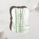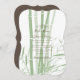 Este design apresenta galerias elegantes de bambu verde. O fundo bambu verde dá lugar à tipografia marrom. O bambu se sombra criando um tom diferente de verde dando-lhe dimensão. O reverso da design concentra-se em representar a cor castanha do texto e os nomes da noiva e do noivo estão na cor verde-bambu. Elegante design de convite de casamento asiático com elementos modernos. Também estão disponíveis itens de papelaria de casamento e outros formatos de convite de casamento.