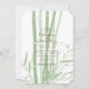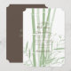 Este design apresenta galerias elegantes de bambu verde. O fundo bambu verde dá lugar à tipografia marrom. O bambu se sombra criando um tom diferente de verde dando-lhe dimensão. O reverso da design concentra-se em representar a cor castanha do texto e os nomes da noiva e do noivo estão na cor verde-bambu. Elegante design de convite de casamento asiático com elementos modernos. Também estão disponíveis itens de papelaria de casamento e outros formatos de convite de casamento.