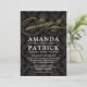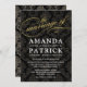 Convites para Casamento em Deco de Arte a Preto e Dourado - apresenta um fundo preto com marfim escuro vintage ou cor damasco de safra esticada na frente e atrás com um roteiro elegante em ouro impresso. Consulte a coleção de correspondência de cheios encontrada nesta página.