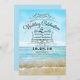 Vintage elegante / retro convites para casamento na praia com mar turquesa, céu aqua e praia arenosa. Na moda, tipografia elegante, concha elegante e caligrafia - perfeita para vintage, mas moderna praia/casamento de destino - Todo elemento design criado por Jinaiji
