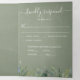 Mostre todos os detalhes do seu casamento com este adorável convite de casamento triplo. Os convidados podem facilmente cortar o cartão postal RSVP e colocar no correio! Edite facilmente todas as informações com os detalhes do seu casamento e adicione sua própria foto! Veja toda a nossa coleção Dusty Blue Eucalyptus para mais itens correspondentes!