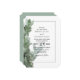 Esta design apresenta folhas e galhos de eucalipto de prata em dólar. O belo verde do eucalipto deixa elogiar a elegante e moderna fronteira negra em torno do texto do casamento. Uma fusão perfeita do moderno e chic com tons verdes prateados de eucalipto. Verde prateado, preto e branco são uma combinação perfeita para um casamento temático de verde rústico. Design de convite de casamento único com elementos modernos. Também estão disponíveis itens de papelaria de casamento e outros formatos de convite de casamento.