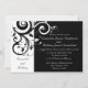 Convites negros modernos e impressionantes, contemporâneos, com sotaques brancos, com delicado fundo de folha de rolagem de espiral. Personalize online com seus detalhes de casamento. Cartões RSVP Correspondentes: