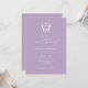 O convite de casamento lilás elegante apresenta um design mínimo com uma crista monográfica. Tipografia moderna com serifa clássica em branco. Para comprar a linha completa visite www.zazzle.com/dotellabelle