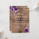 Convocação Rústica De Madeira Rústica De Flor Roxo. Altere o texto para se adequar à sua festa de casamento.
