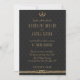 Convites náuticos de casamento com âncora de ouro e texto personalizável, quando o casal hospeda com as suas famílias, impressos em fundo negro com padrão de âncora