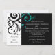 Convites negros modernos e fascinantes para casamentos negros contemporâneos, com sotaques brancos e aqua, com delicado fundo de folhas de rolagem floral. Personalize online com seus detalhes de casamento.