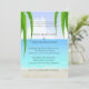 Convite com um tema de praia. Legal água azul e céus, areia e duas palmeiras. Personalize com seus detalhes de casamento.
