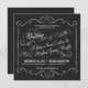 Rico Chalkboard Wedding Invitations — Swoshes giros, encaracolados e belos vintage e estilos mistos retro-tipografia faz um convite de casamento preto-e-branco. Adicione seus nomes e informações de casamento neste modelo fácil de usar. Cada elemento design pode ser movido para que você altere o texto e o layout de um tema de casamento formal ou semissformal. Perfeito para casamentos modernos modernos modernos modernos com um toque sofisticado de charme rústico clássico para a noiva e noivo tradicionais.Nota: Mostrado em cartões de convite quadrados - outros tamanhos e estilos disponíveis na loja. Entre em contato conosco para obter ajuda com a personalização se precisar de espaço adicional para os detalhes do casamento.